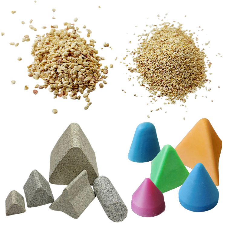 Für die Oberflächen- und Gleitschleiftechnik bieten wir Ihnen eine breite Auswahl an Schleifkörpern, Reinigungs-Compounds, Trocknungsgranulaten, Strahlmittel und mehr.